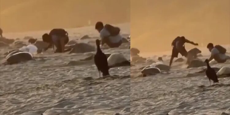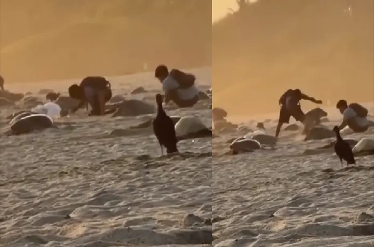 De acuerdo con la agencia de noticias RIOaxaca, este hecho se registró en la playa Escobilla, localizada en el municipio de Santa María Tonameca. En el video se puede ver a al menos tres jóvenes con costales blancos cavando hoyos en la arena. Inclusive uno de ellos agarra y avienta a una tortuga.