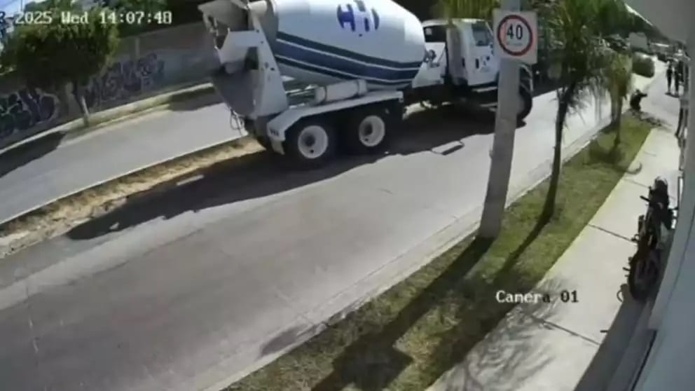 En las imágenes se puede observar como a las 14:07 horas, el operador de la revolvedora avanza presuntamente para ingresar a un negocio, mientras el trabajador, identificado como Bryan Josué, conocido como “El Miclo”, se agacha para trabajar sobre el pavimento y la pesada unidad cargada de concreto le pasa por encima.