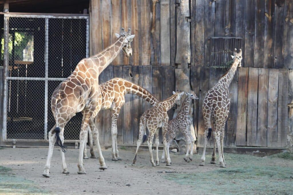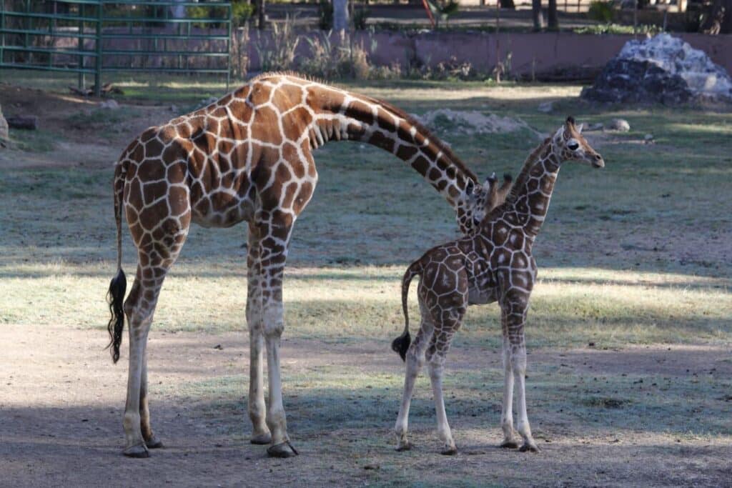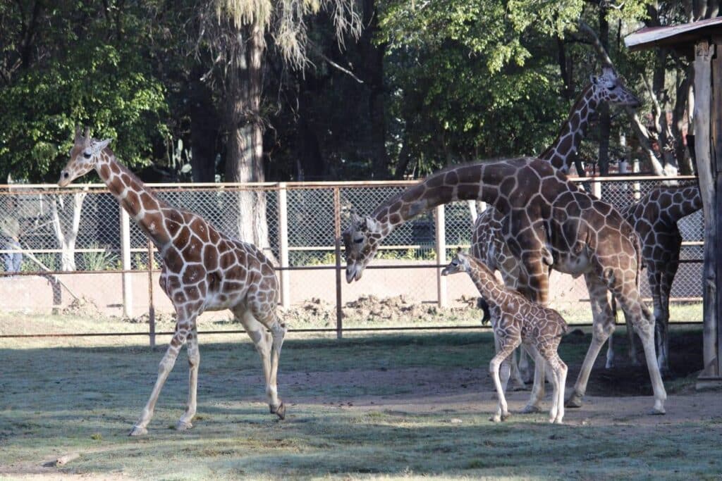 Las jirafas reticuladas recibieron con cariño y curiosidad al nuevo integrante, y pese a que su mamá “Niurka”, es muy temperamental y sobreprotectora, el resto de la manada seguía con interés cada paso y movimiento del recién llegado.