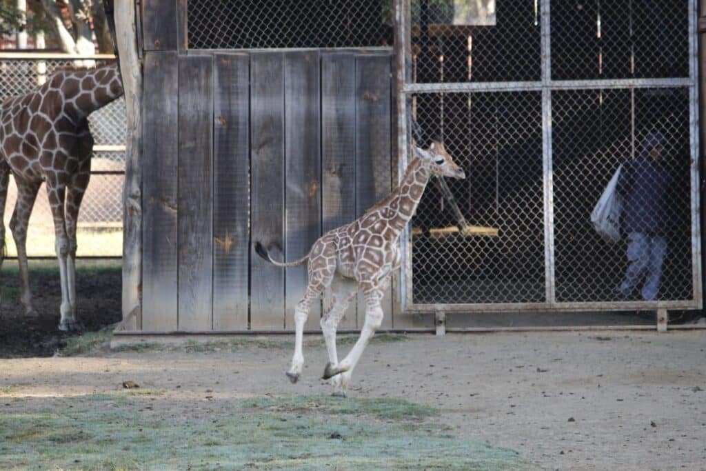 Con alegría y mucha energía, la pequeña jirafa macho, que nació con una estatura aproximada de 1.75 metros y un peso de 80 kilos, pudo explorar su nuevo espacio de cautiverio y conocer a los demás miembros del grupo.