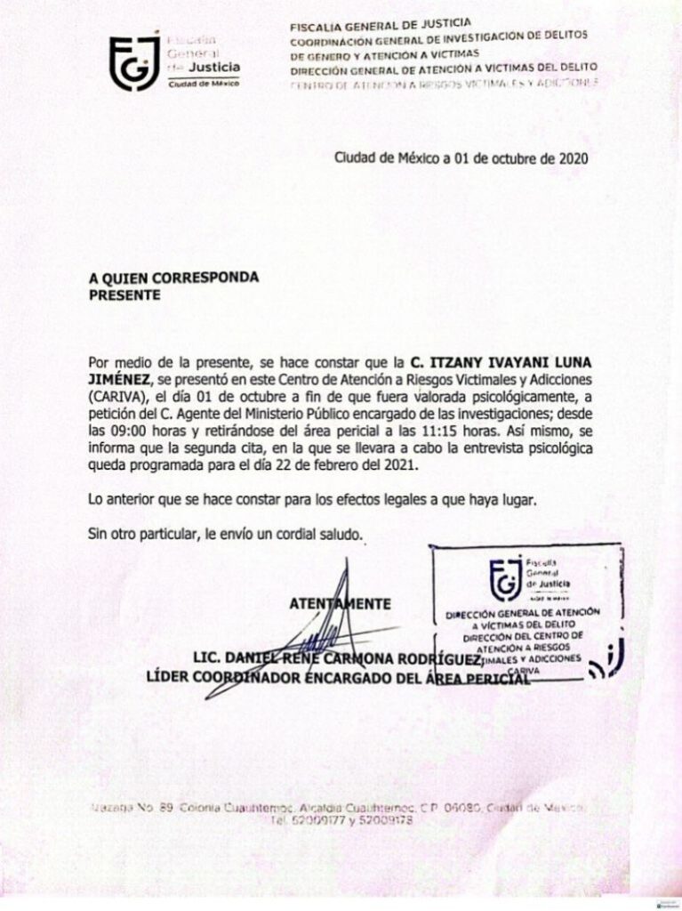 Detalló que desde el año 2020 existe una denuncia formal presentada ante la Fiscalía de Investigación Territorial de la alcaldía Benito Juárez. También señaló que cuenta con medidas de protección vigentes, aunque asegura que estas no han sido suficientes para frenar la violencia ni garantizar su seguridad.