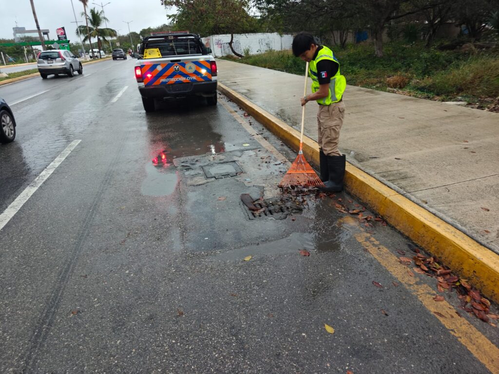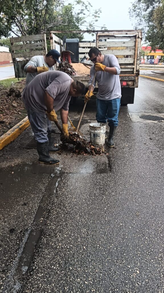 Las cuadrillas realizaron labores de limpieza, desazolve de alcantarillas y liberación de drenajes pluviales, acciones clave para facilitar el flujo del agua y reducir riesgos a la población.