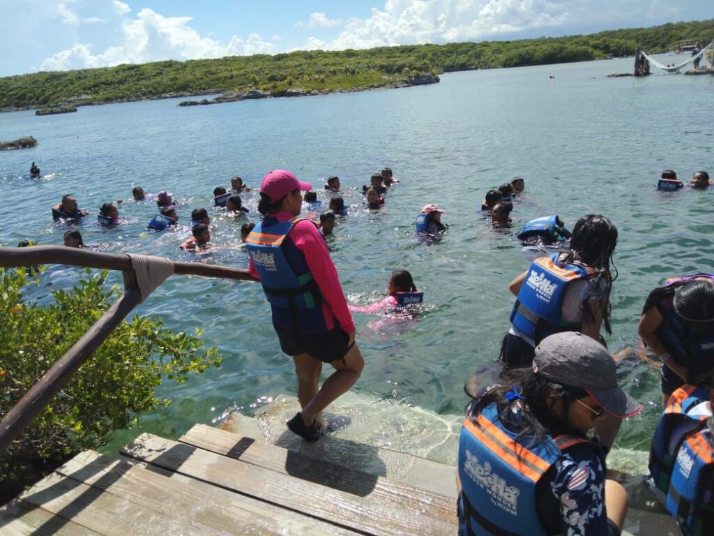 Participaron 57 niñas y niños, acompañados por cuatro docentes, quienes durante el recorrido conocieron la riqueza natural de la región y aprendieron sobre la caleta, una entrada natural del mar hacia la tierra, así como sobre la piedra caliza que caracteriza al suelo de la Península de Yucatán.