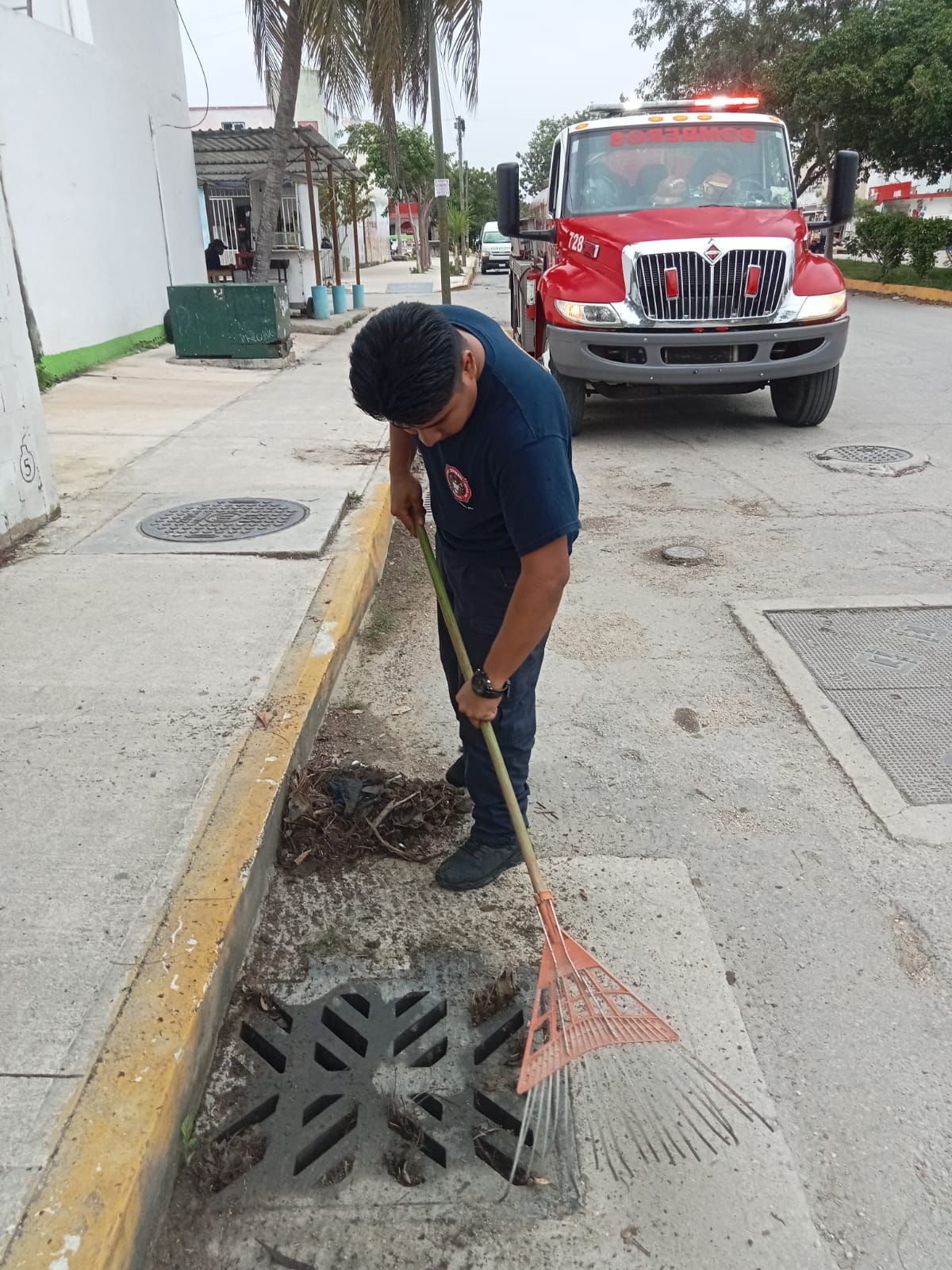 El titular de la dependencia, Darwin Covarrubias, informó que el personal operativo y de bomberos trabaja de manera coordinada con la Secretaría de Servicios Públicos Municipales, llevando a cabo acciones de limpieza de alcantarillas, desazolve y mantenimiento de drenajes pluviales, con el objetivo de evitar encharcamientos y reducir riesgos a la población.