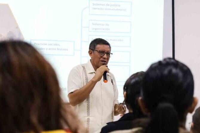 Además, sugirió que para cuidar la lengua maya, los nativos “debemos aprender otros idiomas, para interrelacionarnos con gente de otras culturas y difundir la nuestra”, indicó. Asimismo con respecto al patrimonio intangible, refirió que son las expresiones, los conocimientos y las técnicas junto con los instrumentos, artefactos y espacios culturales que las comunidades las reconocen como suyas.
