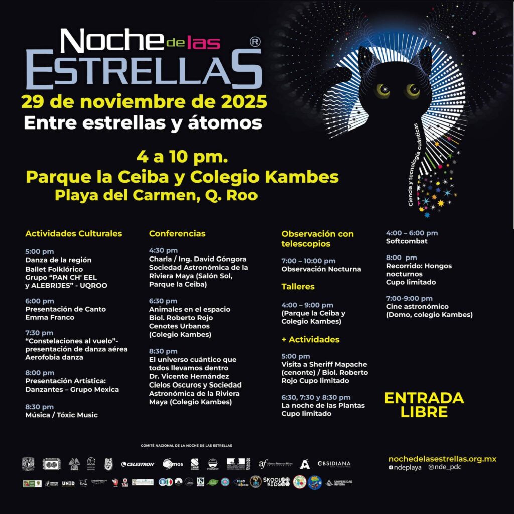 A fin de divulgar la ciencia y la astronomía en Playa del Carmen se unen diferentes agrupaciones y presentan “Noche de las Estrellas 2025” a realizarse en el Parque La Ceiba este sábado 29 de noviembre, así se dio a conocer en una conferencia de prensa llevada a cabo hoy.