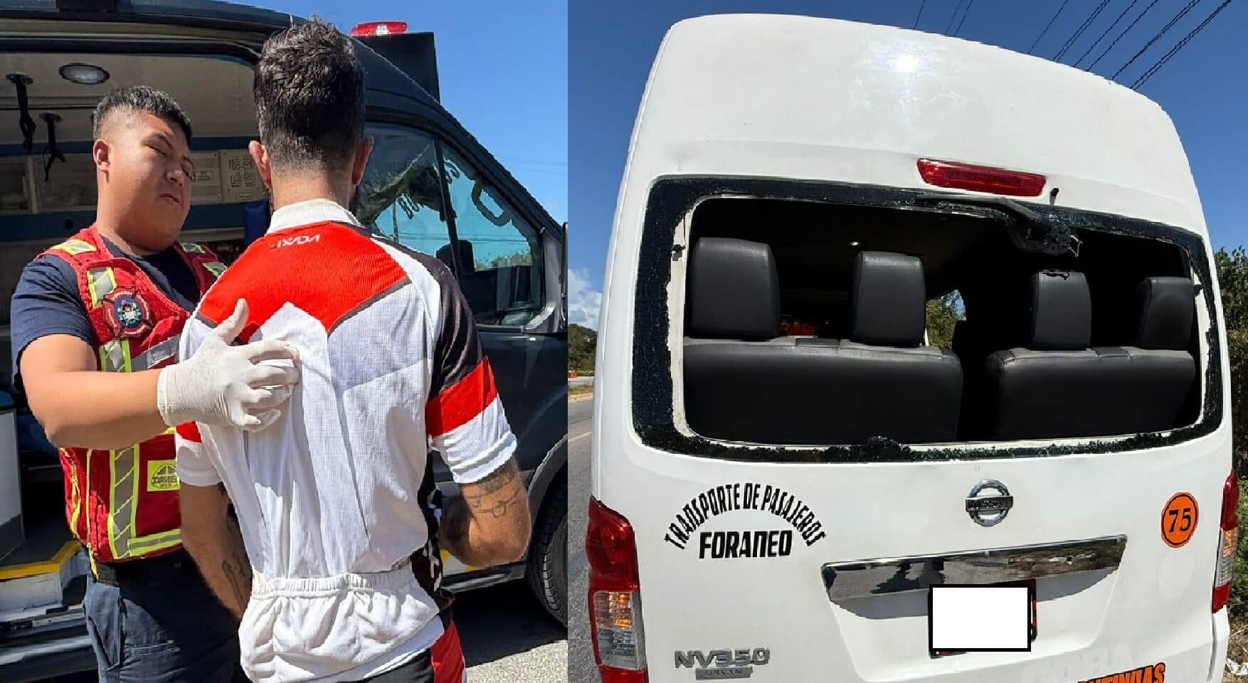 De acuerdo a la información recabada, la van se encontraba estacionada a costado de la vía mientras pasajeros abordaban la unidad, mientras que un ciclista que circulaba demasiado rápido no alcanzó a frenar cuando se pescado que la unidad de transporte detenía su marcha para dejar subir a pasajeros y terminó estrellándose con la parte de atrás y reventando el medallón de vidrio trasero de la unidad vehicular.