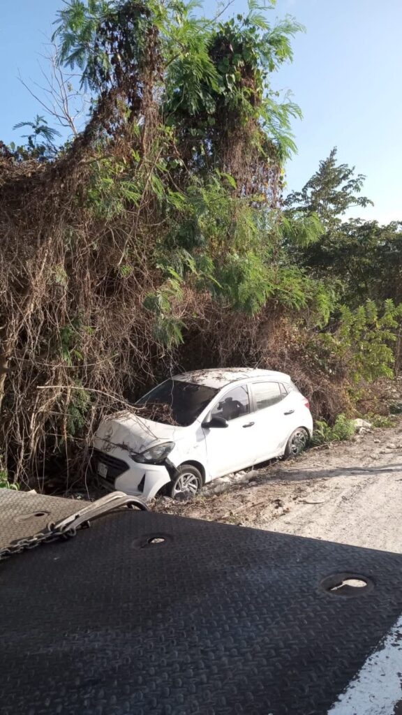 El accidente ocurrió cuando el conductor de un Hyundai i10 color blanco transitaba sobre la carretera federal con dirección hacia Playa del Carmen. De acuerdo con su versión, otro vehículo se le atravesó repentinamente, por lo que decidió maniobrar para evitar el impacto. Sin embargo, al volantear perdió el control de la unidad y terminó saliéndose de la vialidad, quedando detenido a un costado de la carretera.