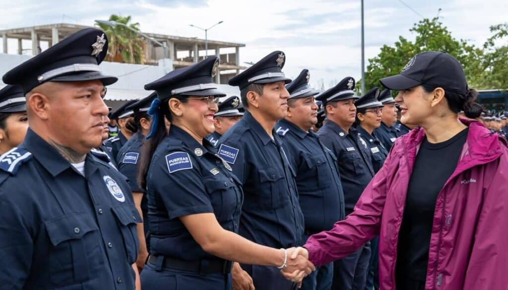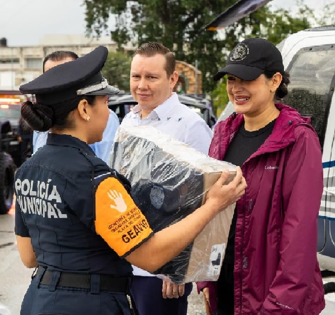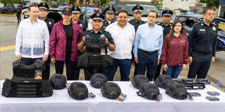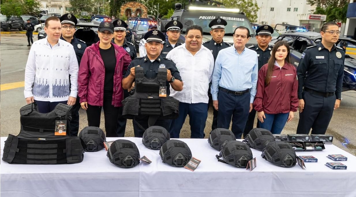La presidenta municipal de Playa del Carmen, Estefanía Mercado, entregó uniformes, equipo táctico y cámaras corporales a elementos de la Secretaría de Seguridad Ciudadana Municipal (SSCM), lo cual consiste en una inversión superior a 38.7 millones de pesos provenientes del Fondo de Aportaciones para el Fortalecimiento de los Municipios (FORTAMUN).