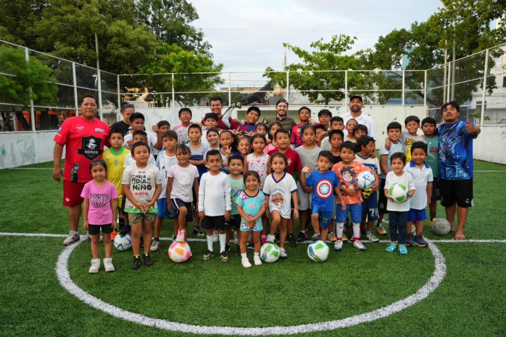 El coordinador y regidor del Partido Verde en Playa del Carmen, Fernando Muñoz Calero, sostuvo un encuentro con niñas, niños y jóvenes del municipio, que forman parte del equipo de fútbol “Chicos del Barrio” del Instituto del Deporte del Gobierno de Playa del Carmen, que encabeza la presidenta Estefanía Mercado.