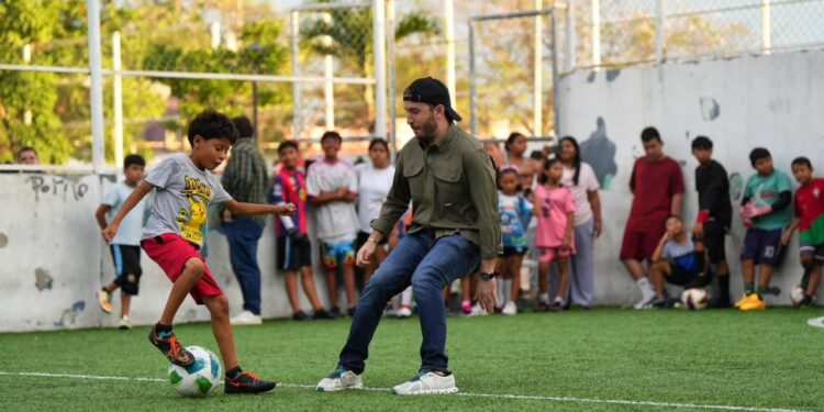 En este marco, el regidor compartió momentos de convivencia con la juventud de la colonia Colosio, donde se brindó el apoyo deportivo e incluso participaron en una cascarita de fútbol.