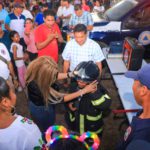 Además de lo anterior, muchos niños pudieron subirse a la góndola de la grúa utilizada para reparar o dar mantenimiento al alumbrado público y usar el equipo personal de los bomberos.