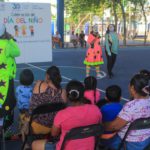 En tanto, en el segundo parque del fraccionamiento Villas del Sol, niños y niñas convivieron también en diferentes actividades, recibieron regalos, degustaron pastel y disfrutaron de un show de payasos.