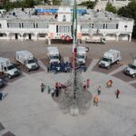 La presidenta Lili Campos, junto al secretario de Servicios Públicos Benny Millán, ha entregado 10 camiones recolectores de basura con el objetivo de mejorar el servicio de recolección de residuos sólidos en diversas colonias y fraccionamientos de Solidaridad.
