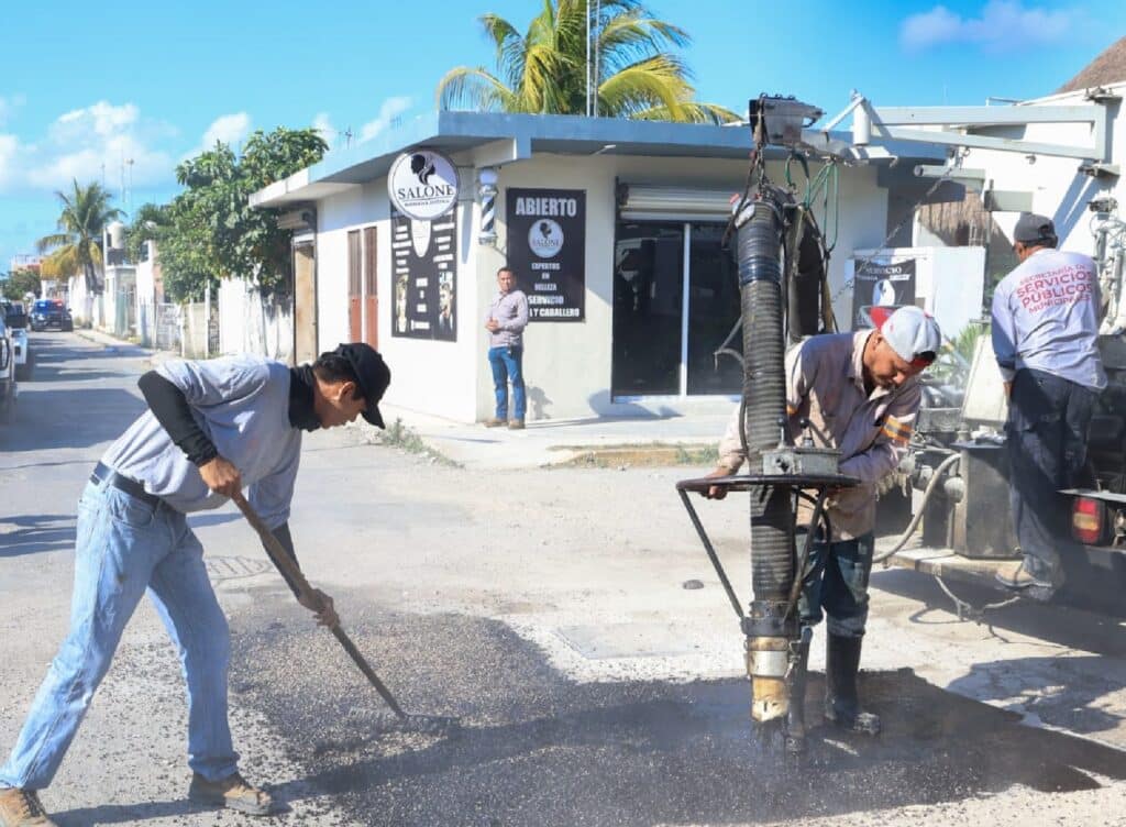 Posteriormente, la alcaldesa Estefanía Mercado visitó el fraccionamiento Puerto Maya, donde brigadistas realizaron trabajos de bacheo para mejorar las condiciones de las vialidades, así como el desazolve de pozos de absorción.