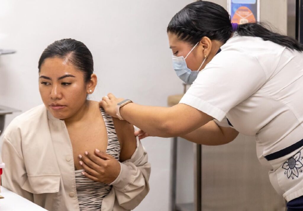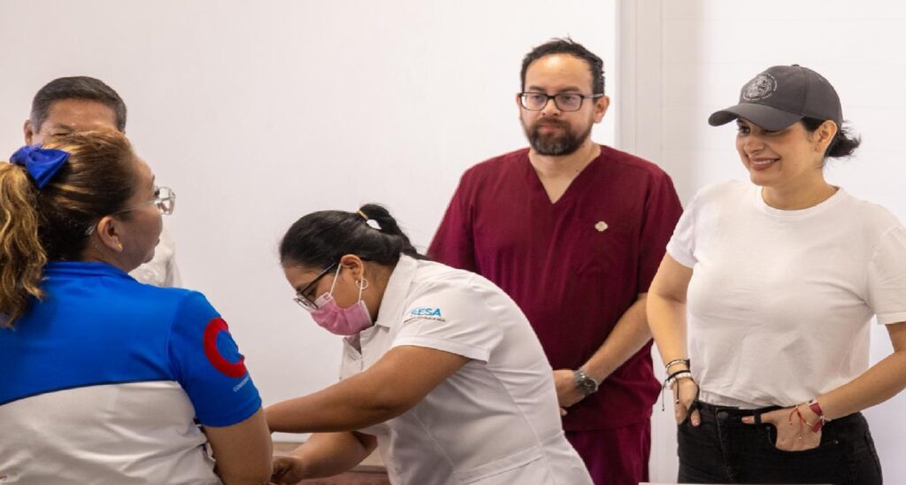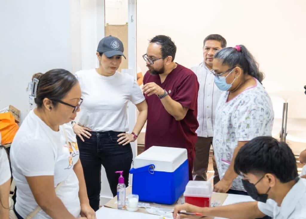 Previamente, la presidenta municipal visitó el Centro de Salud de la localidad en compañía del alcalde y el secretario de Salud, José Antonio Uribe, donde se llevó a cabo una jornada de vacunación contra el sarampión, como parte de las acciones preventivas a favor de la salud pública.