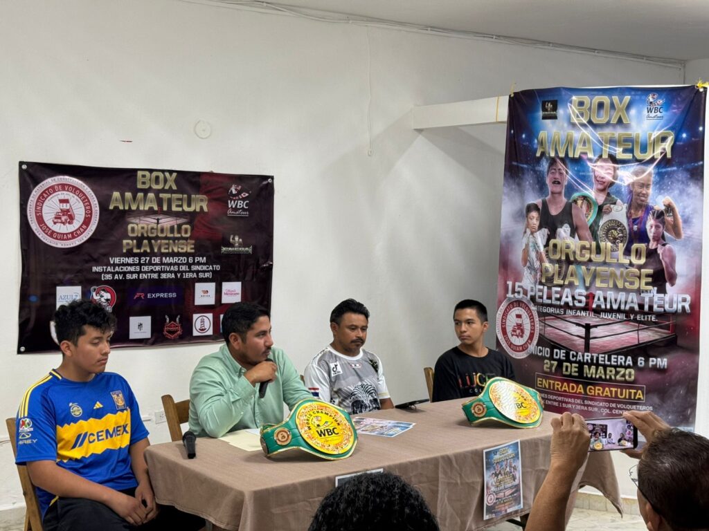 La cita es en las instalaciones deportivas del Sindicato de Volqueteros “José Quiam Chan”, ubicadas en la 35 avenida entre 3 Sur y 1ª Sur, donde se desarrollarán un total de 15 peleas amateur en categorías juvenil, tanto varonil como femenil, con la participación de pugilistas provenientes de diversos gimnasios de Playa del Carmen y algunos invitados de Cancún.