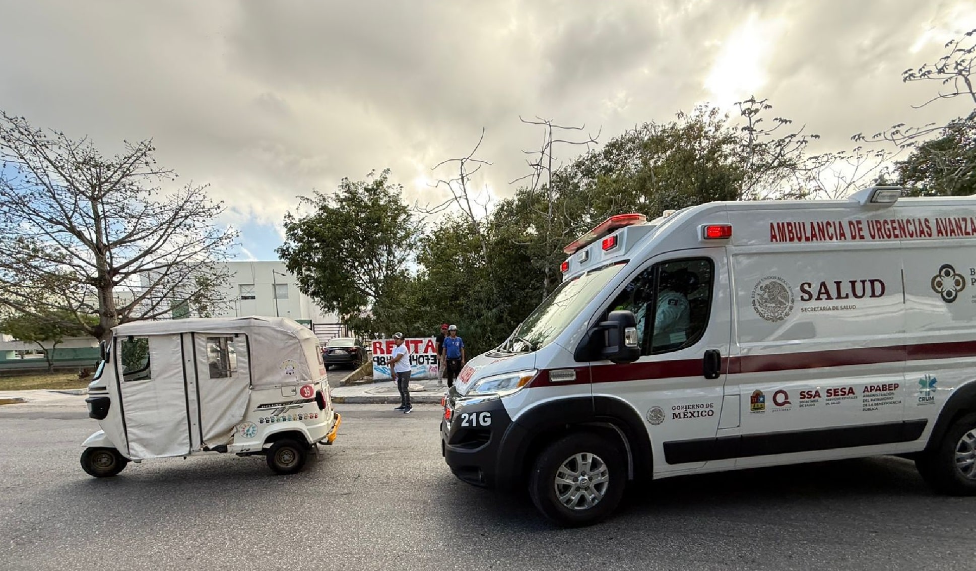 Un aparatoso percance vehicular se registró en las inmediaciones del Hospital General de Playa del Carmen, cuando un mototaxista chocó contra la parte trasera de una camioneta que se encontraba debidamente estacionada sobre la avenida Constituyentes con calle 145 en la colonia Ejido.
