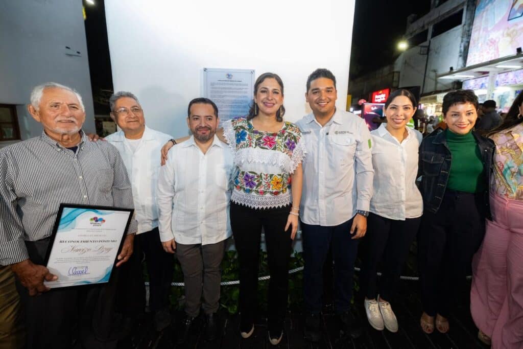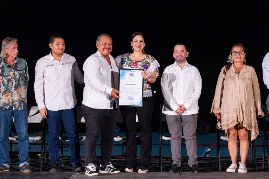 El evento tuvo lugar en el Parque Fundadores, donde Mercado destacó apellidos como Quiam, Dzib, Puc y Aguilar, presentes en la memoria histórica local, y reconoció la visión de las primeras familias que imaginaron un futuro en aquel antiguo poblado pesquero.