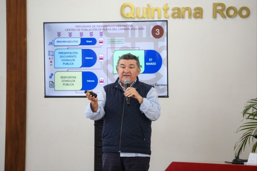 Durante la sesión, el presidente del Consejo y secretario de Ordenamiento Territorial, Hernán González, informó que el siguiente paso del proceso corresponde a la realización de audiencias públicas, las cuales se desarrollarán conforme a la normativa de consulta pública vigente. Estas audiencias tienen como objetivo involucrar a la ciudadanía en la revisión, análisis y seguimiento del proyecto de actualización del Programa de Desarrollo Urbano del Centro de Población de Playa del Carmen.