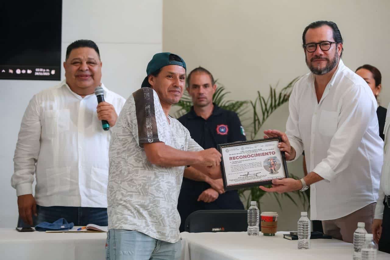 Los reconocimientos fueron otorgados a mujeres y hombres que, de forma altruista, reunieron víveres, entregaron enseres domésticos y brindaron asistencia directa a las personas afectadas. Entre los grupos, organizaciones y ciudadanos distinguidos se encuentran Obra Misionera, La Brigada Buena Onda, restaurante Los Huastequitos, Vivero Viva, Carnitas Palestina, Grupo Casoga, además de Marcio Gómez, representante de Derechos Humanos; Jaime Chávez Meza, coordinador municipal de la fundación Codapo Playa del Carmen; y la voluntaria Lorena Hernández.