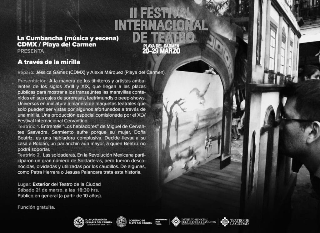 El inicio teatral será para todos los niños y niñas de 10 años, la tarde del día 21 de marzo afuera del Teatro de la Ciudad. La Cumbancha (CDMX-Playa del Carmen) presentará “A través de la mirilla”, que se escenificó en el Festival Cervantino.