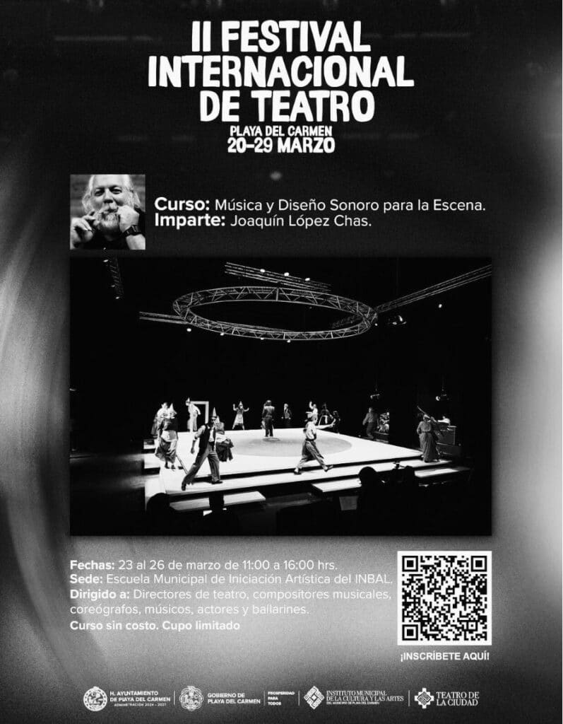 Del lunes 23 al jueves 26 de marzo de 11 de la mañana a 4 de la tarde, el maestro Joaquín López Chaz impartirá este taller a coreógrafos, músicos, actores, actrices, bailarines, compositores musicales y directores de teatro, en la Escuela de Iniciación Artística asociada al INBAL, en la colonia Bellavista. Cupo limitado. Registro: https://acortar.link/zLTKIF