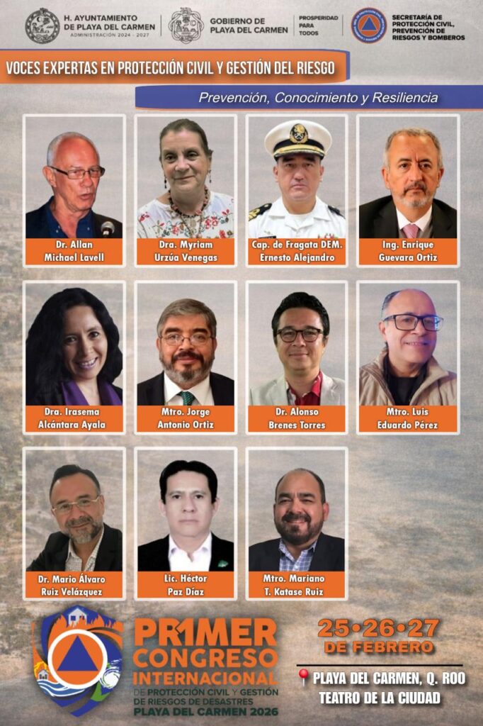 Impulsado por la visión preventiva del gobierno que encabeza la presidenta municipal Estefanía Mercado, Playa del Carmen se declara listo para recibir a especialistas, autoridades y profesionales de más de 25 estados de la República Mexicana y 12 países, en el marco del Primer Congreso Internacional de Protección Civil y Gestión de Riesgos y Desastres 2026.