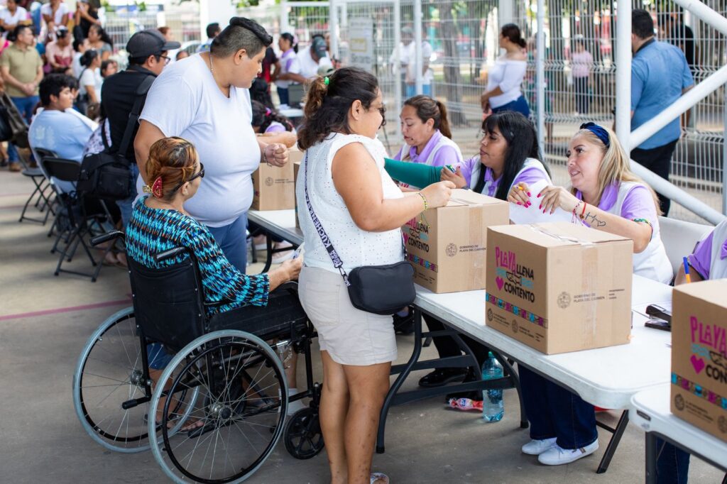 La presidenta municipal, Estefanía Mercado, acompañada por la secretaria de Justicia Social y Participación Ciudadana, Deyanira Martínez Estrada, encabezó este viernes la entrega de los primeros apoyos alimentarios del programa “Playa Llena, Corazón Contento” correspondientes al mes de octubre, beneficiando a más de tres mil familias en situación de vulnerabilidad en Playa del Carmen.