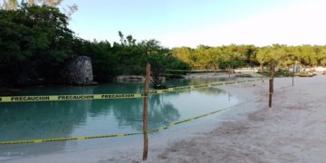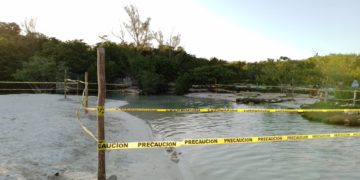 Colocan cordones de seguridad donde hay brotes de agua en Cenote de Punta Esmeralda con el objetivo de que se recuperen y oxigenen