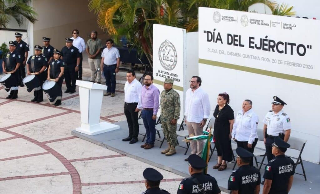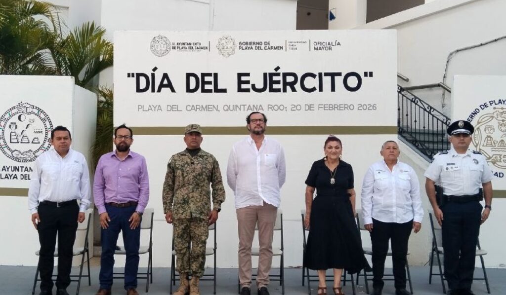 Durante la conmemoración del Día del Ejército Mexicano, el gobierno municipal de Playa del Carmen encabezado por la presidenta Estefanía Mercado reconoció la vocación permanente de servicio a la nación de las fuerzas armadas, mediante una ceremonia cívica realizada en el patio central del Palacio Municipal.