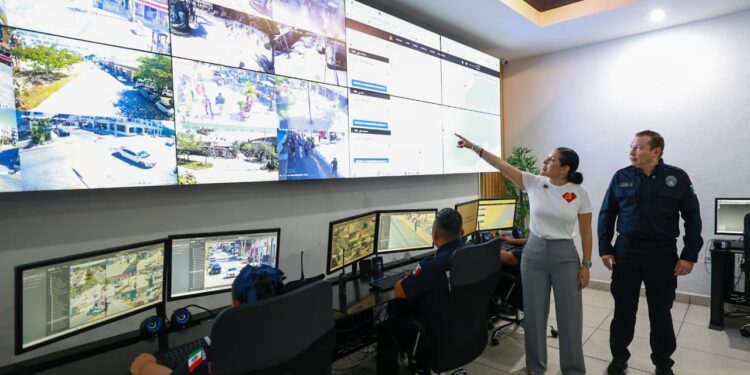 Con el objetivo de fortalecer la seguridad y la transparencia en el actuar policial, la presidenta municipal Estefanía Mercado realizó un recorrido por el Centro de Control, Comando, Comunicación y Cómputo (C4), donde supervisó la operación del sistema de videovigilancia mediante cámaras corporales (bodycams).
