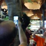 Los meseros del restaurante India Jones intentaron rociar con agua y jabón al confundido animal para que este huyera pero algunos comensales se opusieron a esta acción de los meseros, dejándolo por la paz.