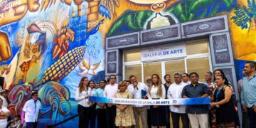 En compañía del representante de la gobernadora del estado y junto a Rodolfo Parra, autor del mural del palacio, además de artistas plásticos y visuales, cortó el listón inaugural de la galería de arte que se encuentra en el interior del Palacio Municipal del centro, donde se exhibe parte de la historia de Playa del Carmen y de Solidaridad, como de sus primeros delegados y presidentes municipales a lo largo de 30 años de historia.