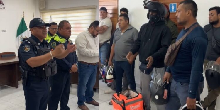 Un grupo de moto repartidores se congregaron frente al Palacio Municipal de Tulum para denunciar y principalmente exigir un alto a los presuntos actos de abuso y robos por parte de los elementos de las corporaciones policiacas tanto del alcalde Diego Castañón así como de estatales.