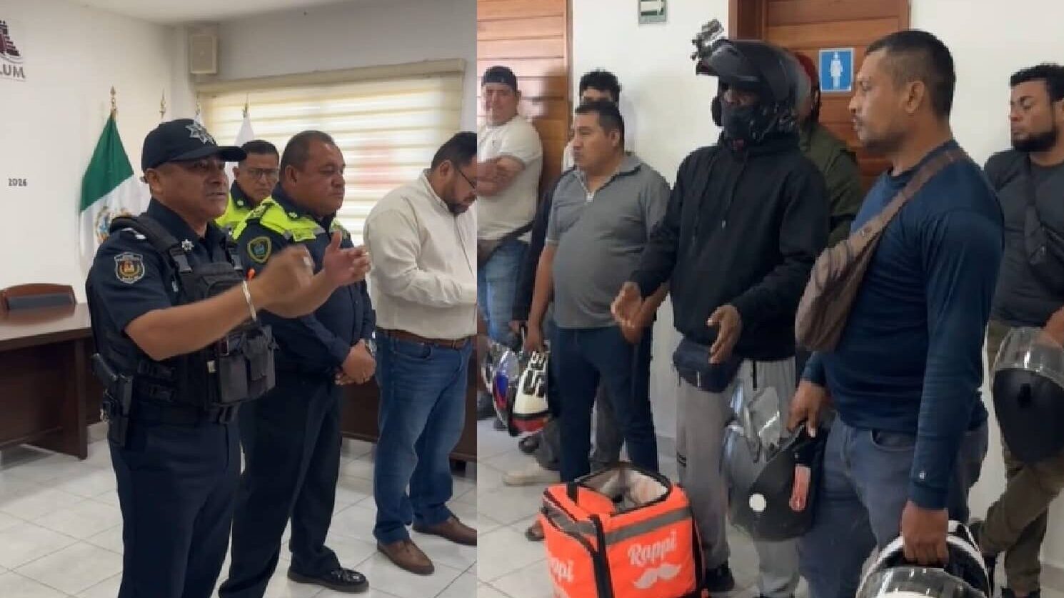 Un grupo de moto repartidores se congregaron frente al Palacio Municipal de Tulum para denunciar y principalmente exigir un alto a los presuntos actos de abuso y robos por parte de los elementos de las corporaciones policiacas tanto del alcalde Diego Castañón así como de estatales.