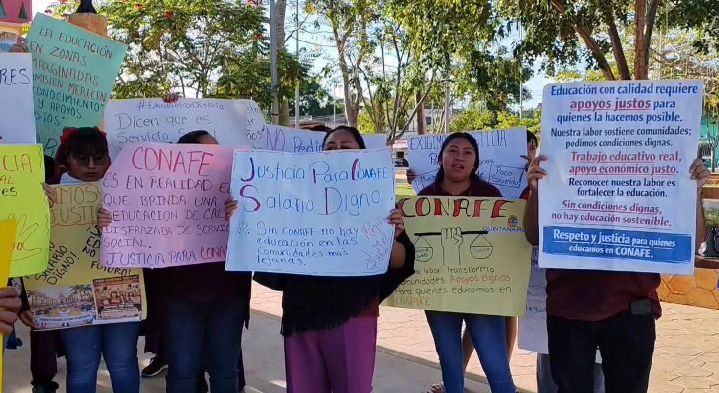 Cabe mencionar que las protestas forman parte de un paro nacional que involucra a 117 figuras educativas, entre jóvenes educadores y profesores, quienes brindan atención académica a casi 2 mil 900 niñas y niños en 33 comunidades rurales de los municipios de Felipe Carrillo Puerto y José María Morelos.