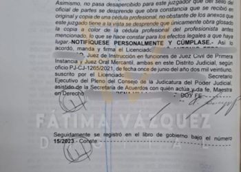 Cebe mencionar que como parte del proceso, fueron requeridas ambas partes para un juicio oral, sin embargo, la alcaldesa no acudió, así como tampoco se presentó a las dos audiencias anteriores, argumentando que no se encontraba en el municipio.