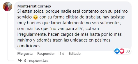 Dentro de las miles de quejas que existe por parte de los usuarios que tienen o deben tomar un taxi en la ciudad, es acerca del pésimo servicio que brindan, unidades sucias, vestimenta e higiene de los choferes, la música que imponen a sus clientes durante el viaje o el que algunas unidades están en mal estado.