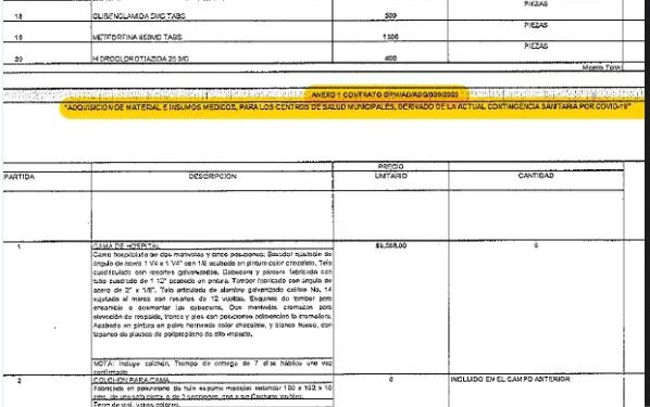 La compra más alta se hizo a la empresa “Marjos Ingeniería, S. de R.L. de CV”, bajo el número de contrato DPM/AD/ADQ/011/2020 por la cantidad de $3,132,000.00 (Tres millones ciento treinta y dos mil pesos 0/100 MN), para la adquisición de 300 mil máscaras quirúrgicas o de aislamiento para personal médico (cubrebocas) con un precio de nueve pesos más IVA que supuestamente fueron entregados a la población en general.
