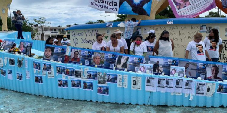 La marcha fue cancelada y el colectivo convocó a una conferencia de prensa en la glorieta del Ceviche en Cancún, en donde tapizaron con fotografías y mantas donde aparecen los datos de las personas desaparecidas y aun no localizadas.