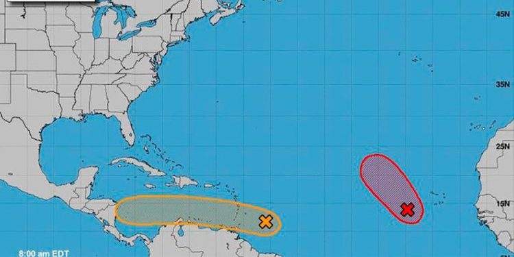 En su Boletín informativo de las 7 horas, la dependencia estatal da a conocer que, de acuerdo con reportes de emitidos por el Centro Nacional de Huracanes de Miami, Florida, y difundidos por el Servicio Meteorológico Nacional, sobre el seguimiento y vigilancia para el océano Atlántico, mar Caribe y Golfo de México es preciso seguir el desarrollo de una Zona de baja presión asociada a una onda tropical que se localiza al oeste suroeste de las Islas de Cabo Verde.
