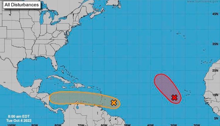 Asimismo, indica que una segunda zona de baja presión asociada a una onda tropical, se localiza en el centro del Atlántico Tropical al este del Arco de las Antillas Menores, se mueve hacia el oeste, presenta una probabilidad baja de desarrollo de 20% en las próximas 48 horas y medio de 40% en los próximos cinco días aproximadamente 3,460 kilómetros de las costas de Quintana Roo.