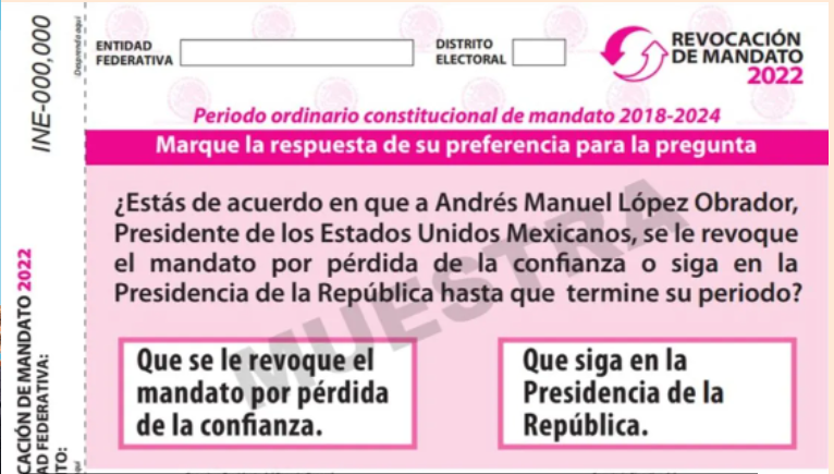 Este próximo domingo 10 de abril, se llevará a cabo el primer ejercicio de Revocación de Mandato del Presidente de la Republica electo para el periodo constitucional 2018-2024, instrumento de participación incorporado en el artículo 35 de la Constitución Política de los Estados Unidos Mexicanos en el año de 2019.