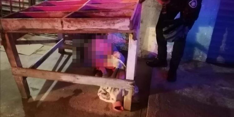El menor que se encontraba durmiendo en la vía pública, resguardado tan solo bajo una estructura de madera y tapado con un cobertor, fue entrevistado por los uniformados para indagar sobre su situación.