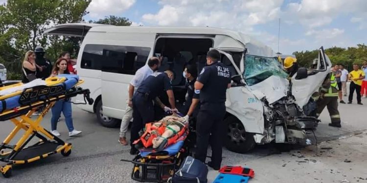Este jueves se registró un choque entre un autobús de personal y una van de turismo que circulaba a la altura de Isla Blanca.