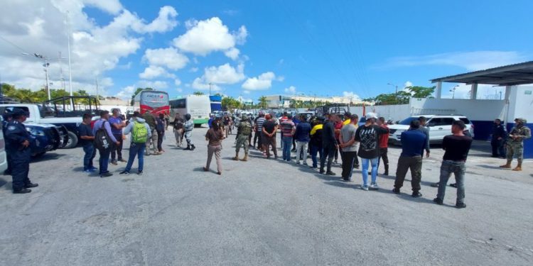 El operativo fue realizado con apoyo de la Marina, Guardia Nacional, Policía Estatal y Policía Municipal; quienes iban deteniendo a los camiones que iban a salir de Cancún para una revisión de documentos.
