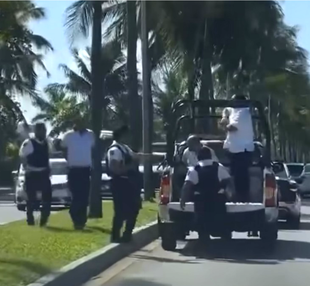 Afortunadamente, quienes pasaban por el lugar grabaron lo que sucedía y los elementos de la policía turística tuvieron una intervención inmediata y detuvieron el ‘show’ que estaban dando los taxistas y el Uber.