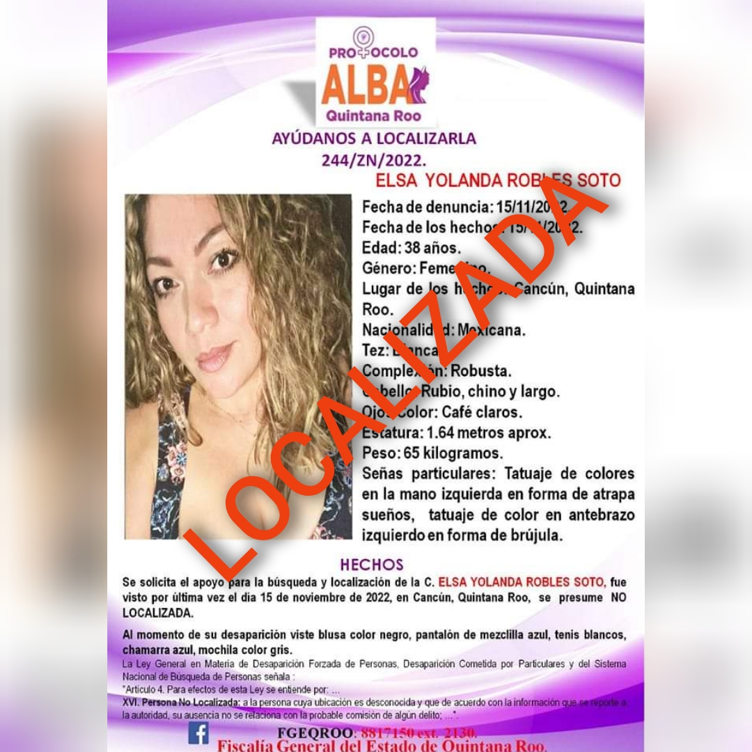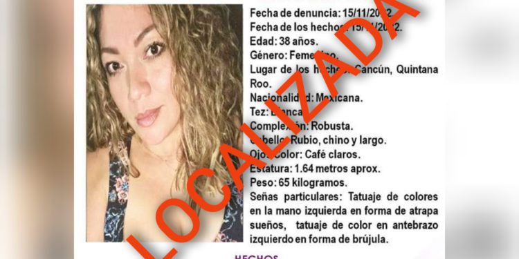 Desde sus redes sociales la Fiscalía General del Estado dio a conocer que la mujer de 38 años ya se encontraba localizada y en buen estado de salud.
