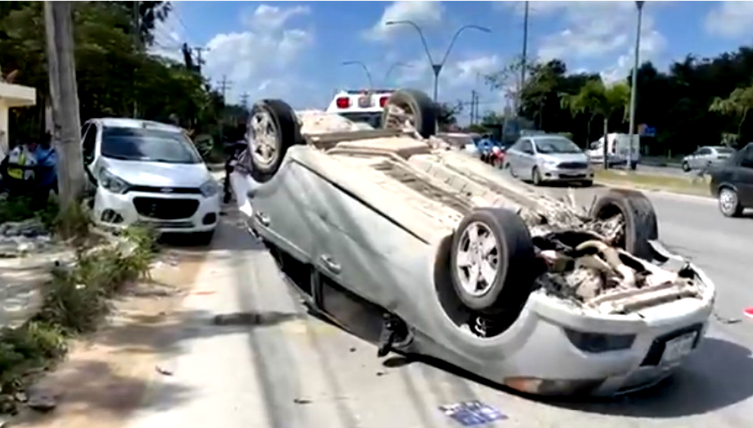 Un aparatoso choque se dio este jueves 16 de febrero sobre la avenida José López Portillo a la altura de la colonia conocida como “El Milagro” en Cancún.
